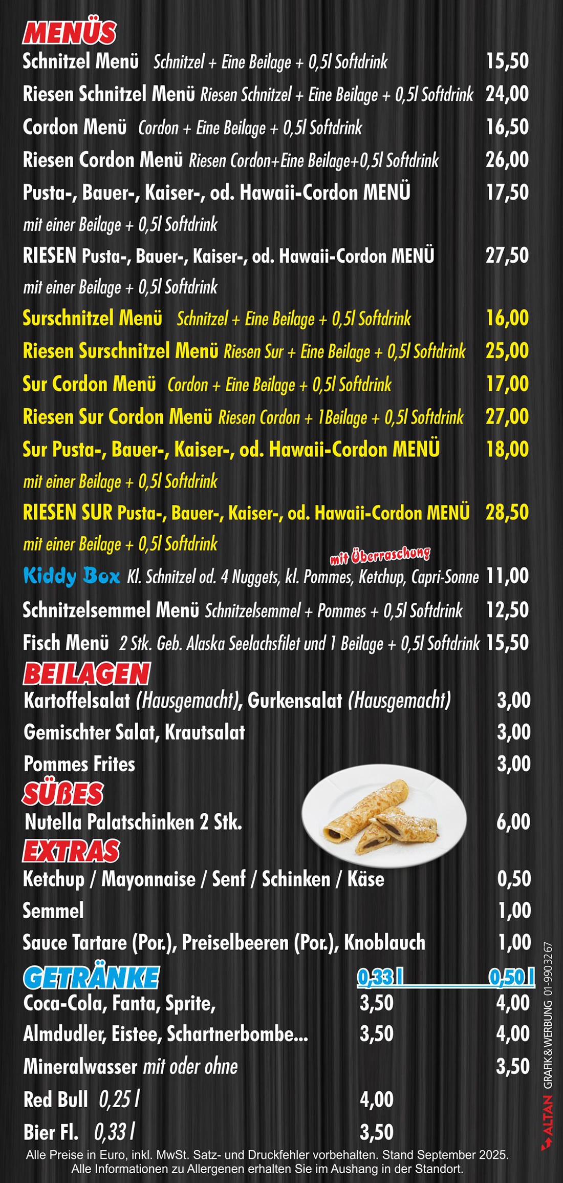 Alle Preise in Euro. inkl. MwSt. Satz und Druckfehler vorbehalten. Stand September 2025.